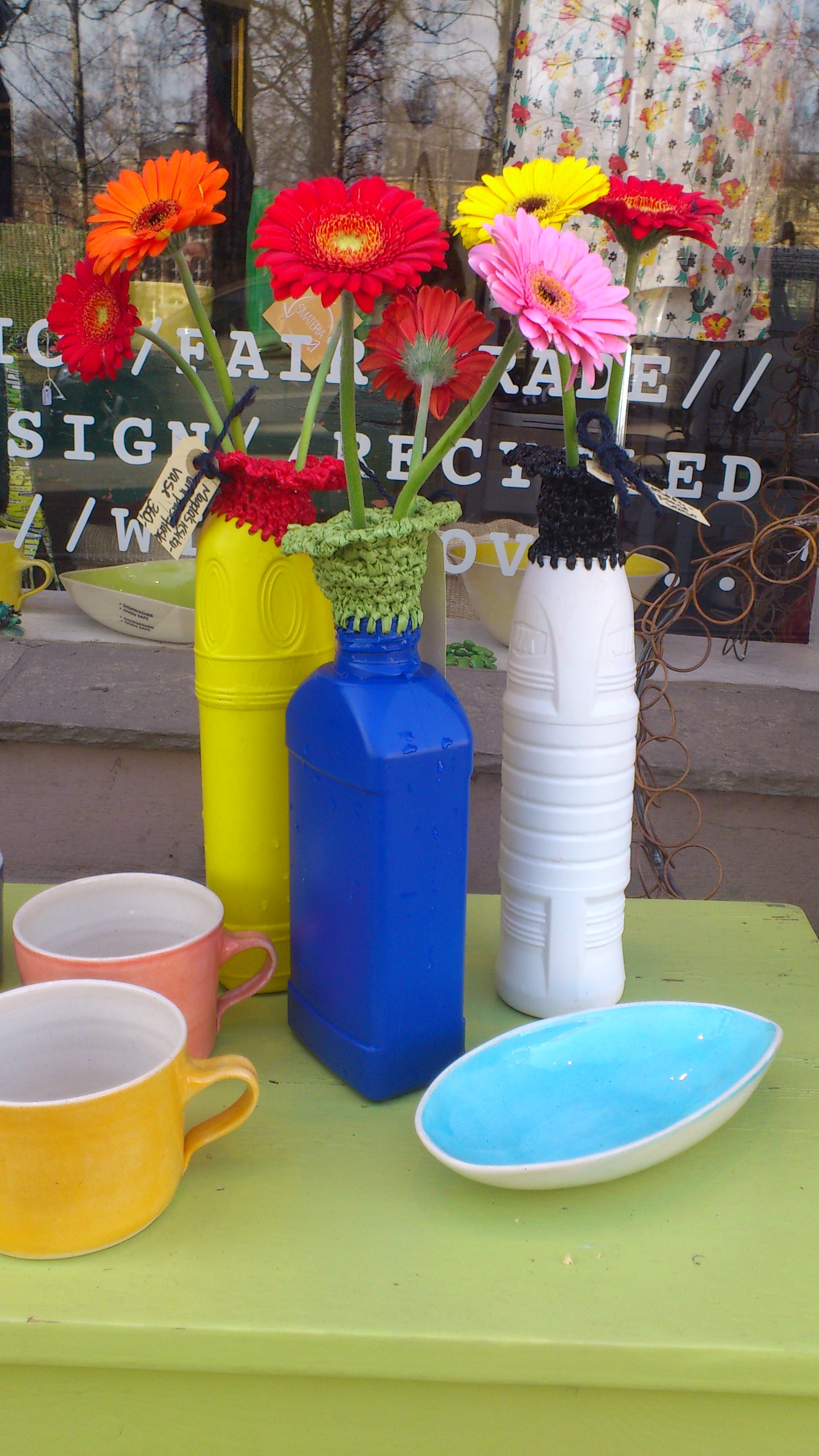 Magda van der Vloed er kvinnen bak disse kule vasene, laget av gamle plastflasker og plastikk poser fra søppelfyllinga i Durban.