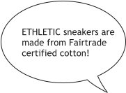 Trå mykt i verdens første Fairtrade-bomull sneakers. Klassiske canvas sneakers har eksistert i flere tiår – og ETHLETIC er rett og slett en god idé gjort bedre. Bedre, som i å velge Fairtrade og økologisk bomull, og 100% naturlig gummi, og ved å samarbeide med fabrikker som investerer i sine ansatte og behandler dem med respekt. Smarte valg som gir et positivt fotavtrykk. Så få dine kule sko på, vær smart, spille hardt, og trå mykt …
