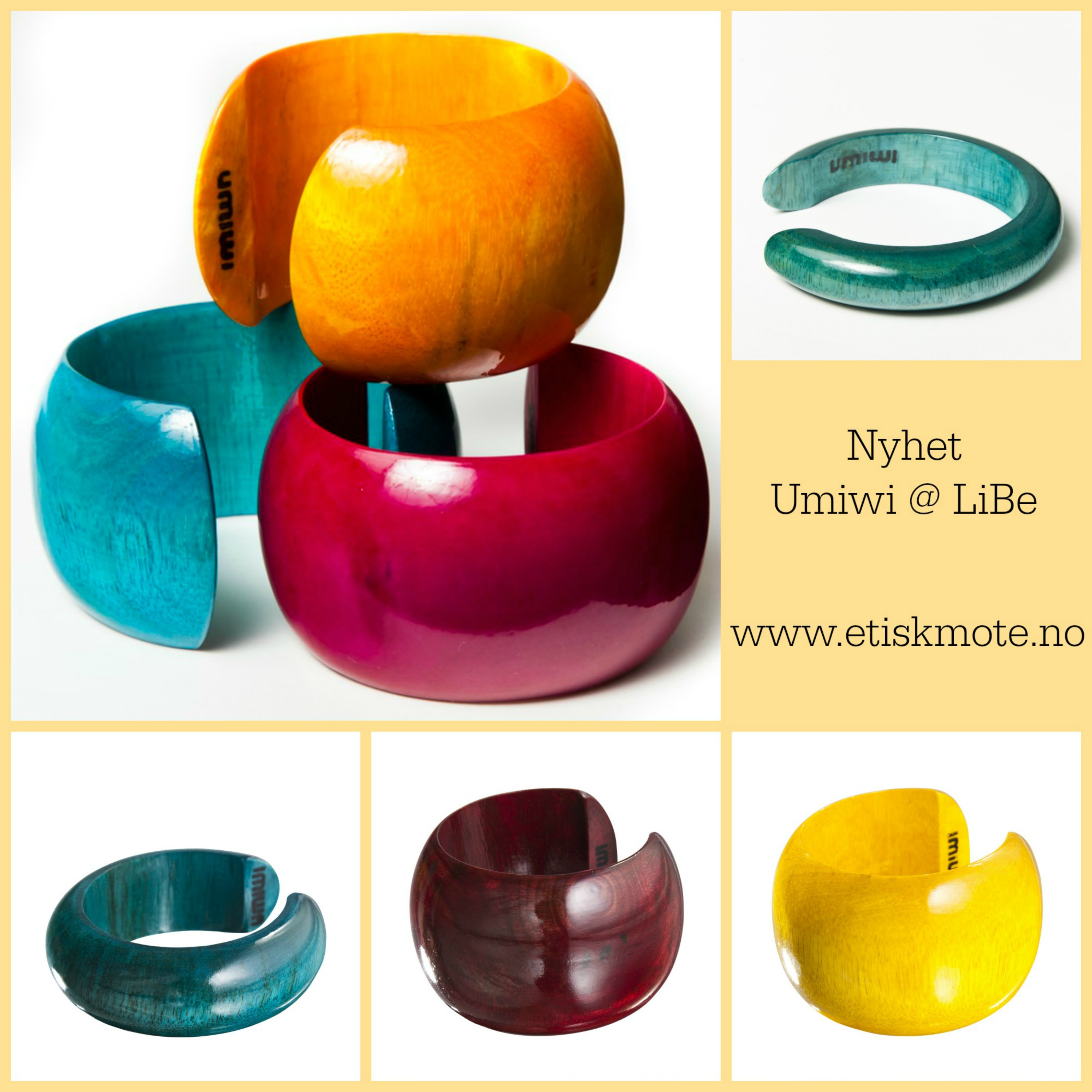 Av og til trenger man litt tid. Man ser noe vakkert og man tenker man vil se mer på det. Tiden fyker og det ble borte. Men det sådde noe, nysgjerrighet. I fjor på Ethical Fashion Show i Berlin, kom jeg over en liten stand med fargerike og lekre armbånd. Hadde så mange avtaler og hodet var fullt av inntrykk, så fikk ikke tid til å se nærmere på de. Og så innimellom har jeg tenkt på disse fargerike fine armbåndene. Så når jeg nå igjen var i Berlin på denne etiske motemessa, visste jeg veldig godt at jeg ville oppsøke de igjen. Og nå fikk jeg en nærmere prat med Dorothea, en av jentene bak UMIWI – not a fairy tale. Kjempelekre armbånd, håndlaget i Thailand av mango tre. Tysk design i samarbeid med en NGO i Thailand, for å skape uavhengighet til donasjoner, og mulighet til å stå på egne bein. Og nå har de altså funnet veien her til LiBe og til nettbutikken www.etiskmote.no De fører også noen utrolig lekre smykker, laget av en familie gruppe i Mexico. Familien har noen sauer, og av ulla lager de noen kjempelekre og enkle anheng. Jeg kjøpte et til meg selv, for å kjenne litt på følelsen de gav meg (ja, det er sånn når jeg velger ut leverandører/varer til butikken er det følelsesstyrt – jeg må kjenne at det er riktig!! ) Og smykket har jeg nå brukt mye de siste ukene, og jeg føler meg så fin med det. Så jeg skal nok på sikt ta inn de også i butikken. Sølvlenken er forøvrig håndlaget av en annen gruppe i Thailand. Jeg DIGGER Umiwi!!